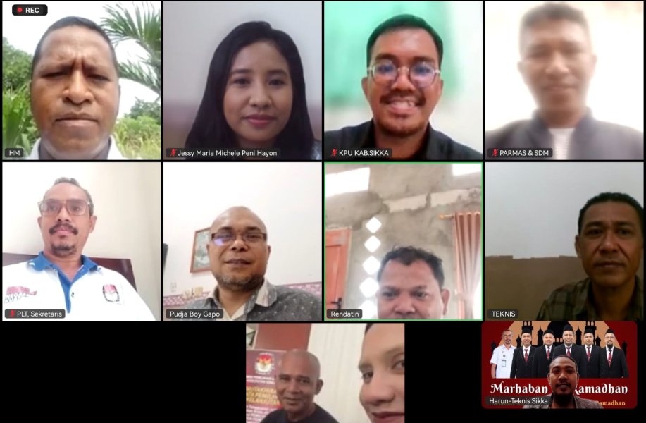 Maumare, kab-sikka.kpu.go.id. Bahas Pemutkahiran Data Pemilih Berkelanjutan (PDPB) hingga sosialisai, Komisi Pemilihan Umum (KPU) Kabupaten Sikka menggelar Rapat Pleno Rutin Mingguan Secara daring melalui Zoom Meeting pada Rabu (25/3/26). Rapat pleno rutin tersebut dipimpin langsung oleh Ketua KPU Sikka, Herimanto diikuti Anggota, Harun Al Rasyid, Ignasius Irvanto Chandra Say, La Hajimu dan Yosef Fredianus Boy Gapo, serta Plt. Sekretaris, Semuel Desryanto Sing. Agenda rapat yakni, mendengarkan Tindak Lanjut (TL) keputusan pleno sebelumnya dan Pembahasan rencana kegiatan mingguan setiap divisi dan sub bagian. Untuk Divisi Perencanaan Data dan Informasi (Rendatin) membahas Helpdesk layanan Pemutakhiran Data Pemilih Berkelanjutan (PDPB), Mempersiapkan Rapat Pleno Rekapitulasi Data Pemilih Berkelanjutan Triwulan I Tahun 2026, Laporan Dokumen E-Monev menunggu Aplikasi di buka, dan Melakukan Patroli Medsos; Sementara Divisi Teknis Penyelenggaraan mengagendakan Layanan Helpdesk Pemutakhiran Data Partai Politik Berkelanjutan, Pengarsipan Dokumen Teknis, Penulisan Buku Teknis, dan Menyiapkan Rancangan Tor dan RAB untuk kegiatan Teknis menyesuaikan dengan Anggaran; Kemudian Divisi Sosialisasi, Pendidikan Pemilih, Partisipasi Masyarakat (Sosdiklih Parmas) dan Sumber Daya Manusia (SDM) membahas Sosialisasi dan publikasi Kegiatan pada laman Media Sosial KPU Sikka dan Website, Layanan PPID (Pejabat Pengelola Informasi dan Dokumentasi), Monitoring Pelatihan ASN (SIMPEL), dan Koordinasi kerja sama bersama BPJS Ketenagakerjaan; Divisi Hukum dan Pengawasan membahas Publikasi dan edukasi produk hukum melalui Jaringan Dokumentasi Informasi Hukum (JDIH), dan Legal drafting produk hukum; Terakhir Divisi Keuangan Umum dan Logistik (KUL) membahas tentang Layanan Helpdesk Laporan Pertanggungjawaban Badan Adhoc Anggaran Hibah Pemilihan Gubernur, Rutinitas perkantoran dan keuangan, Tindaklanjut Laporan LHP Badan Pemeriksa Keuangan, dan Penyusunan Laporan Srikandi, Pengelolaan dan Penyelamatan Arsip, serta Laporan Ahli Media; Turut hadir mengikuti rapat tersebut yakni Kasubag Rendatin, Cornelius Mauritius, Kasubag Teknis Penyelenggara Pemilu, Simon Doni Tukan, Kasubag Keuangan Umum dan Logistik (KUL) Mega Suryati Azhar, Pejabat Fungsional Penata Kelola Pemilu, Cornelian W J Pati, Mario L T Date dan Staf Sekretariat. (humaskpusikka*/) ....