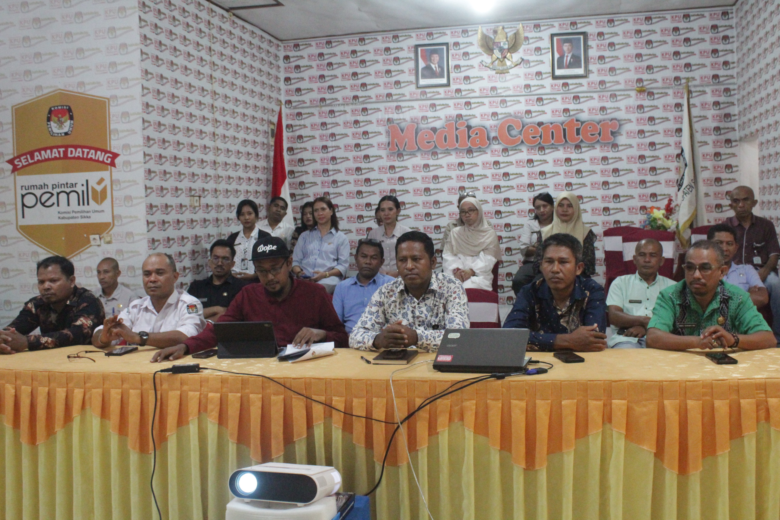 Peserta yang mengikuti dari KPU Sikka, Ketua, Herimanto bersama Anggota, Harun Al Rasyid, Ignasius Irvanto Chandra Say, La Hajimu, dan Yosef Fredianus Boy Gapo serta Plt. Sekretaris, Semuel Desryanto Sing segenap jajaran dan staf.