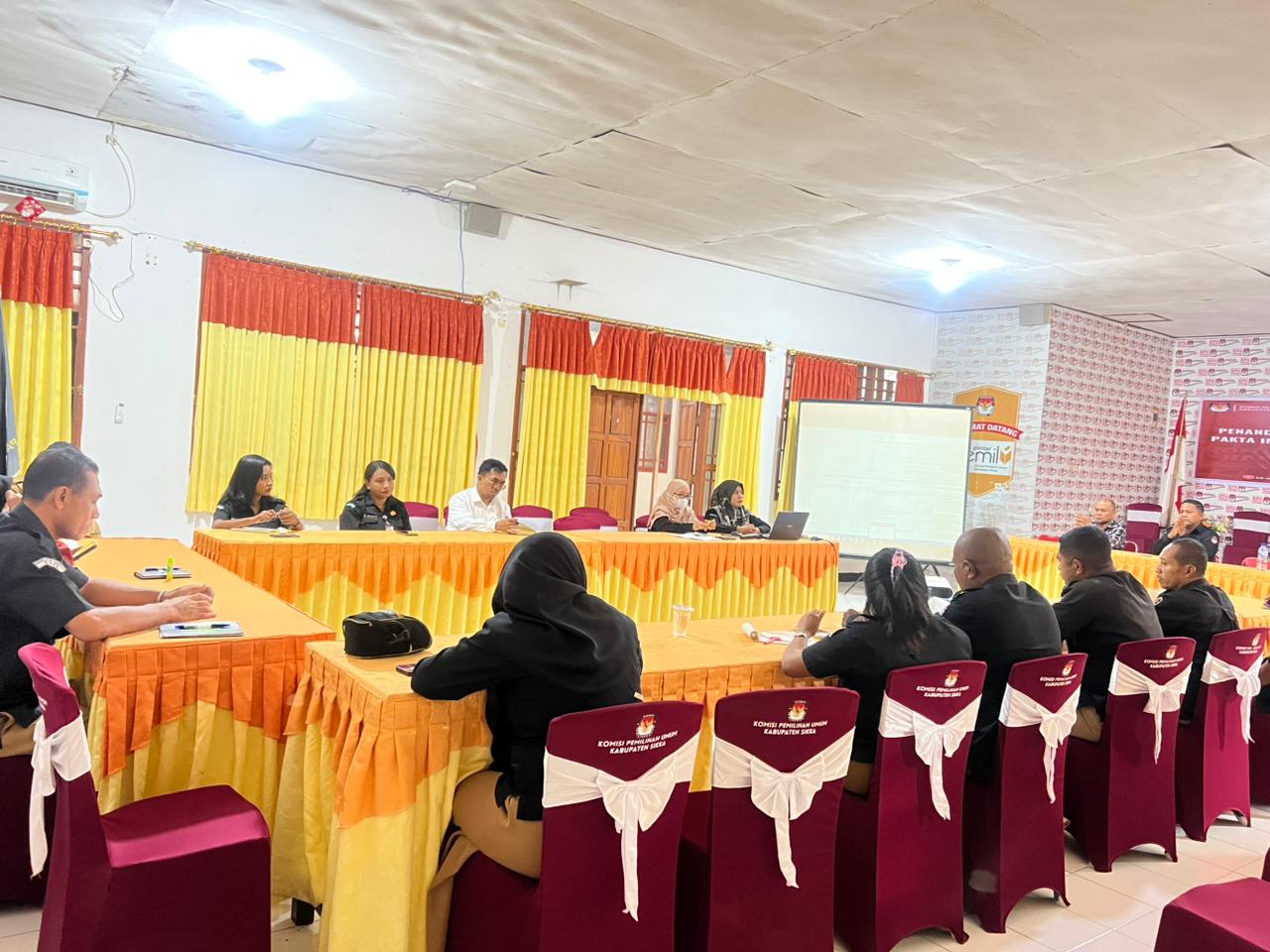 Ketua KPU Sikka dalam arahan pembukaan didampingi Anggota, Yosef Fredianus Boy Gapo dan Plt. Sekretaris, Samel Desriyanto Sing menyampaikan tentang pentignya membangun kesamaan presepsi terkait pola kerja dan dispilin di Lingkungan Sekretariat KPU Sikka sesuai ketentuan yang berlaku.