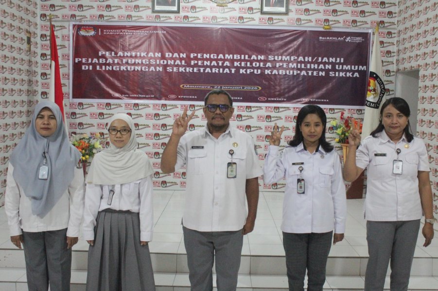 Maumere, kab-sikka.kpu.go.id. Sebanyak lima (5) orang pejabat fungsional penata kelola Pemilihan Umum (Pemilu) di lingkup Sekretariat KPU Sikka dilantik oleh Sekretaris Jendral (Sekjend) KPU Republik Indonesia, Bernad Sutrisno pada Kamis (22/1/26).