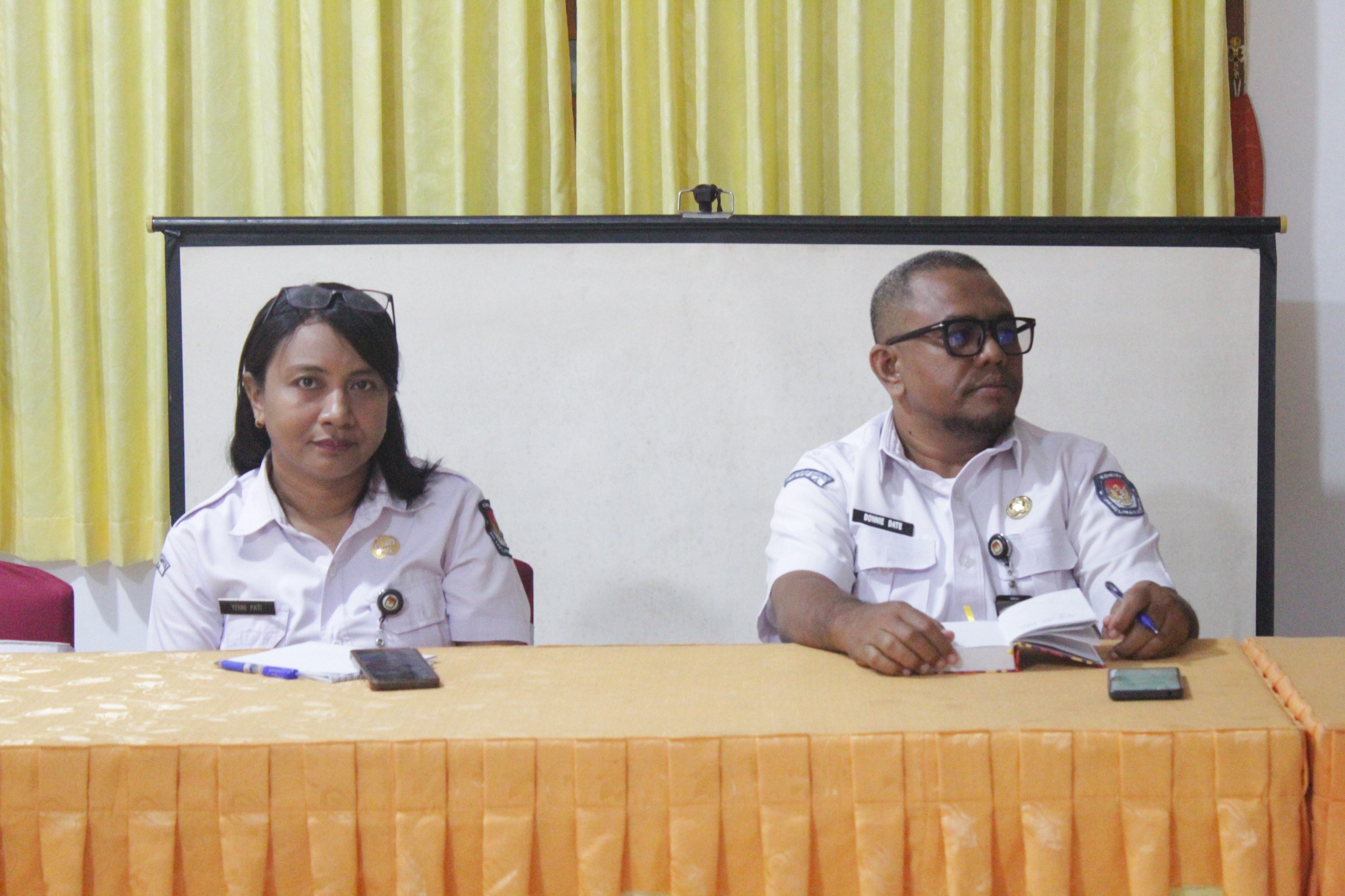Turut hadir mengikuti rapat tersebut yakni Kepala Sub Bagian (Kasubag) Rendatin, Cornelius Mauritius, Kasubag Teknis Penyelenggara Pemilu, Simon Doni Tukan, Pejabat Fungsional Penata Kelola Pemilu, Cornelian W. J Pati, Mario L. T Date, Jessy M. M Peny Hayon dan Staf Sekretariat. (humaskpusikka*/)