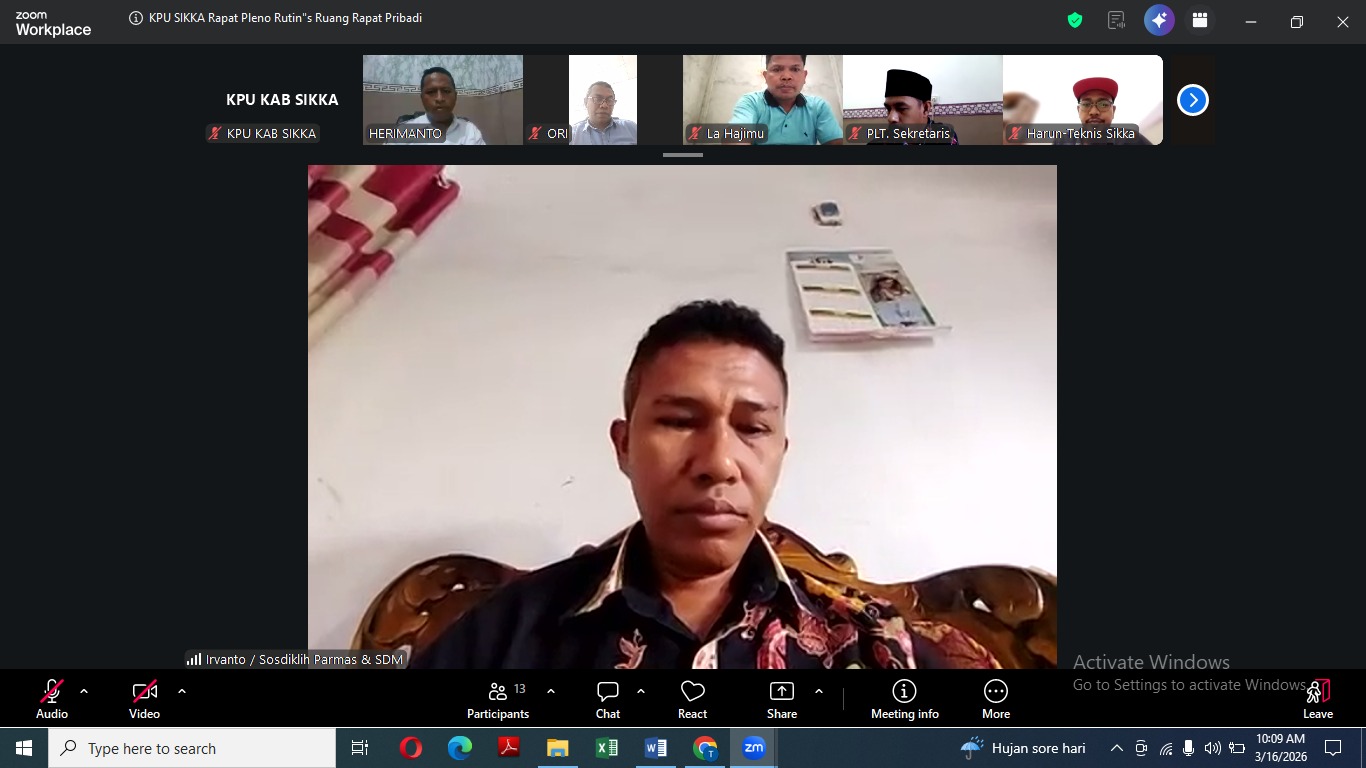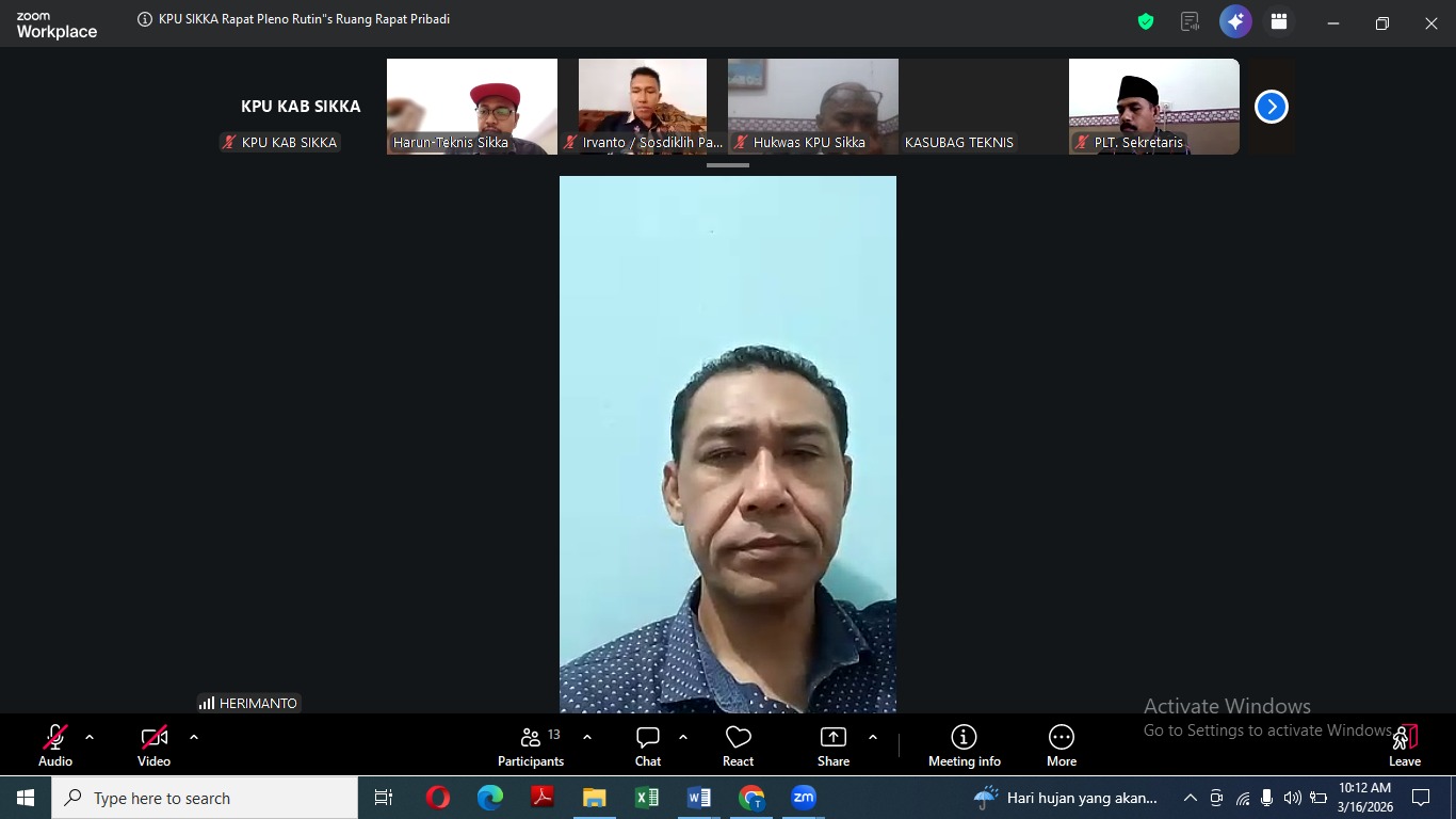 Maumare, kab-sikka.kpu.go.id. Komisi Pemilihan Umum (KPU) Kabupaten Sikka, melaksanakan Rapat Pleno Rutin membahas perencanaan kegiatan Mingguan Secara daring melalui Zoom Meeting, Senin (16/3/26).