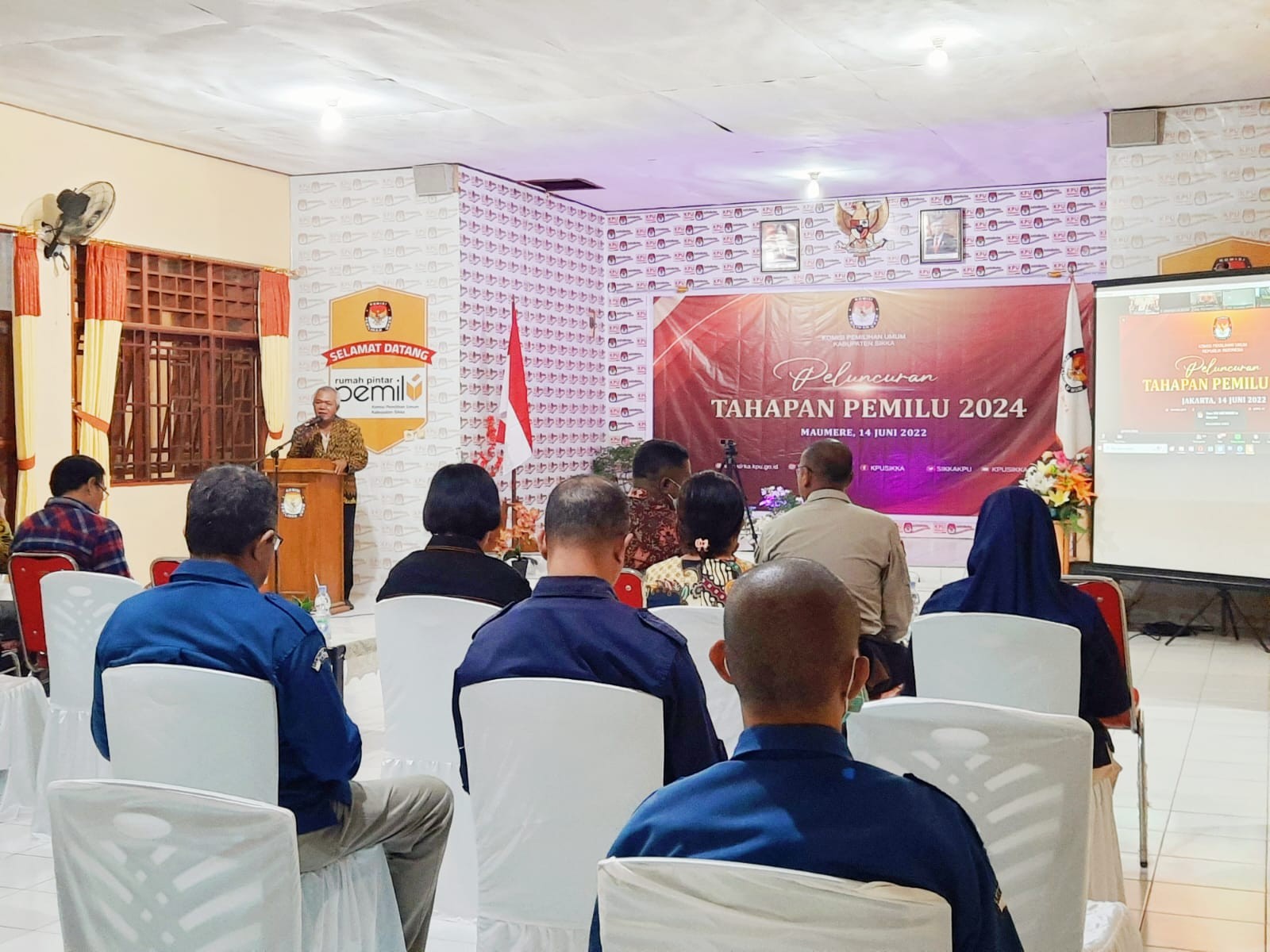 Maumere, kab-sikka.kpu.go.id-- Komisi Pemilihan Umum Republik Indonesia (KPU RI) melakukan peluncuran Tahapan dan Jadwal Pemilu Serentak Tahun 2024, Selasa (14/6/2022) malam. Kegiatan dimaksud dilaksanakan di Jakarta dan diikuti secara daring oleh 34 KPU Provinsi dan 514 KPU Kabupaten/Kota di seluruh Indonesia.
