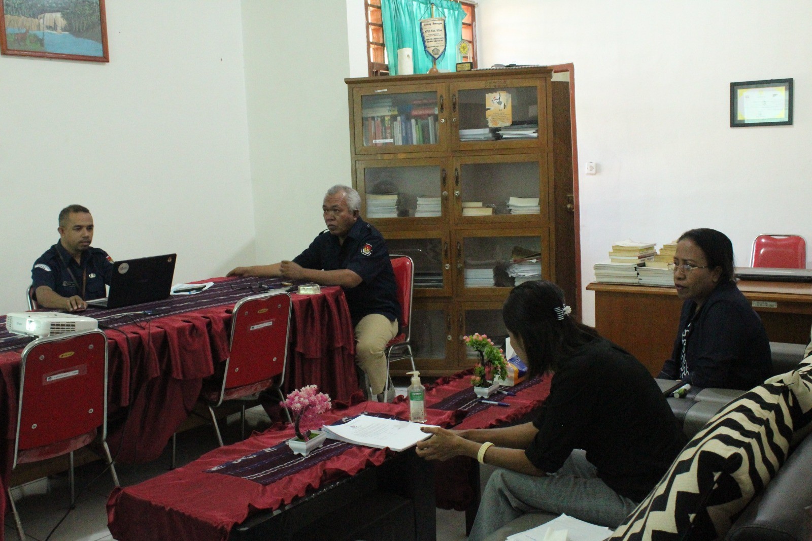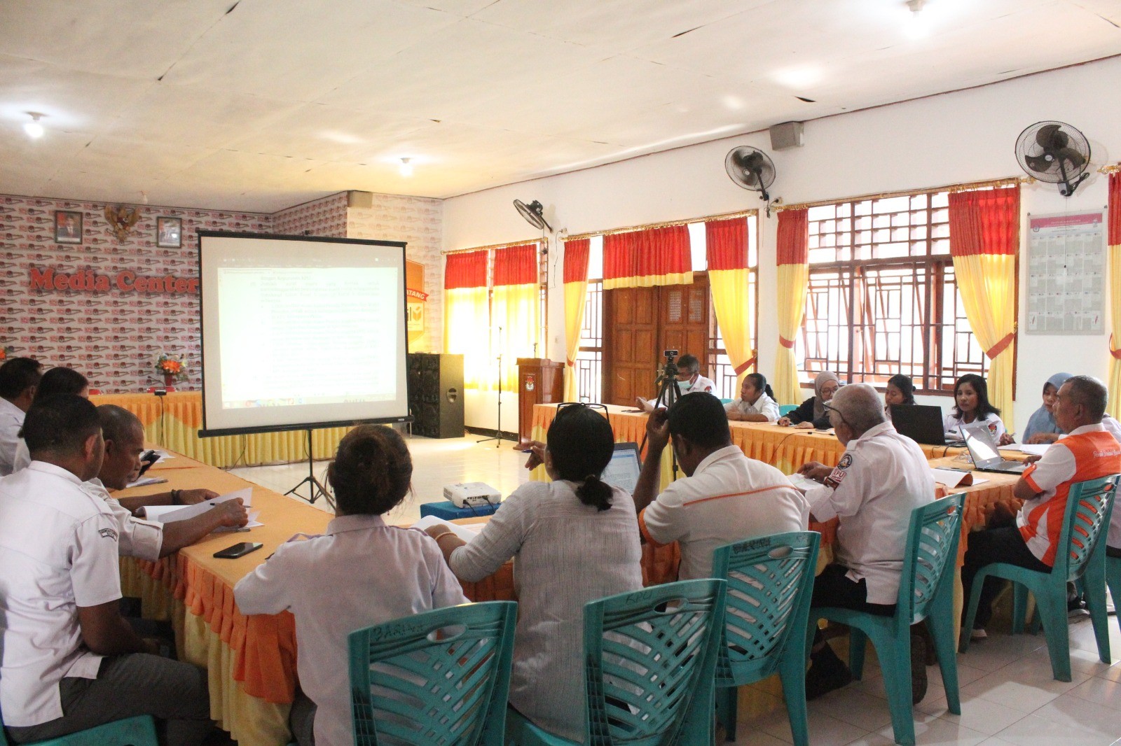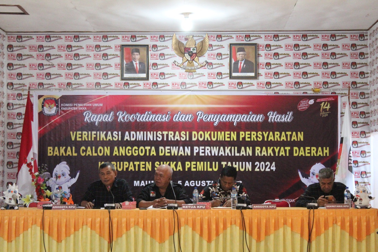 Maumere - Ketua Komisi Pemilihan Umum (KPU) Kabupaten Sikka, Yohanes Krisostomus Feri memimpin rapat koordinasi bersama partai politik terkait tanggapan dan masukan masyarakat terhadap Daftar Calon Sementara (DCS) Anggota DPRD Kabupaten Sikka dalam Pemilu Serentak Tahun 2024, Rabu (30/8). Feri dalam pengantarnya menyampaikan forum Rakoor ini bertujuan untuk menjelaskan kepada Partai politik, hal-hal yang perlu disiapkan untuk menindaklanjuti tanggapan masyarakat dimaksud. Sementara itu Anggota KPU Sikka pengampu Divisi Teknis Penyelenggara, Jupri, menjelaskan bahwa sesuai ketentuan Peraturan KPU, maka terhadap tanggapan atas DCS Partai harus memberikan kesempatan kepada calon untuk melakukan klarifikasi. "Masyarakat memberikan masukan dan tanggapan karena bisa saja mereka belum mengetahui status terkini calon sementara tersebut, oleh karena itu inilah ruang calon sementara dimaksud melalui partai untuk lakukan klarifikasi" jelasnya. "Selanjutnya jika sudah ada dokumen klarifikasinya, partai wajib mengunggah dokumen itu melalui Sistem Informasi Pencalonan atau Silon agar kami verifikasi kembali untuk tentukan status calon sementara, apakah Memenuhi syarat atau tidak memenuhi syarat" jelas Jupri. Diketahui Sesuai Keputusan KPU nomor 996 tahun 2023, Penyampaian hasil klarifikasi oleh partai kepada KPU akan dilaksanakan mulai tanggal 1 - 7 September 2023, selanjutnya KPU mencermati dan menentukan status calon sementara pasca klarifikasi tersebut pada tanggal 8 - 11 September 2023 Turut hadir dalam rapat koordinasi ini perwakilan dari Partai Amanat Nasional, Partai Demokrat, Partai Solidaritas Indonesia, Partai Gelora, Partai Keadilan Sejahtera, dan Partai Demokrasi Indonesia Perjuangan (humaskpusikka)