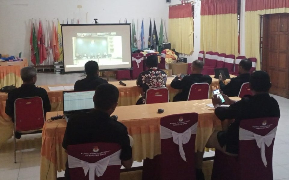 KPU Kabupaten Sikka dihadiri, Ketua Herimanto bersama anggota selaku Juru Bicara, Yosef Fredianus Pudja Boy.