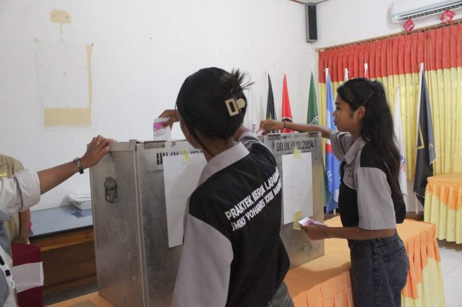 Maumere--- Komisi Pemilihan Umum (KPU) Kabupaten Sikka menggelar simulasi pemungutan dan penghitungan suara melalui Program KPU Mengajar yang diikuti oleh siswa SMK Yohanes XXIII Maumere, Kamis (20/11). Kegiatan berlangsung di Aula Kantor KPU Kabupaten Sikka dan menjadi bagian dari upaya KPU untuk meningkatkan pendidikan pemilih bagi generasi muda. Dalam kegiatan ini, materi disampaikan langsung oleh Harun Al Rasyid, selaku Koordinator Divisi Teknis Penyelenggaraan KPU Kabupaten Sikka. Harun memberikan penjelasan mengenai tahapan pemungutan suara, tata cara pencoblosan yang benar, pengenalan surat suara, peran KPPS, hingga prinsip transparansi dan akuntabilitas dalam proses penghitungan suara. Mantan Ketua Bawaslu Sikka ini menekankan pentingnya pemahaman sejak dini mengenai proses pemilu. “Generasi muda harus memahami bahwa pemilu adalah fondasi demokrasi. Semakin dini mereka mengenal prosesnya, semakin baik kualitas partisipasi mereka kelak,” ujarnya. Turut hadir dalam kegiatan, Kasubbag Teknis Penyelenggaraan Pemilu dan Hukum KPU Kabupaten Sikka, Simon Doni Tukan dan Para Staf sekretariat yang berperan sebagai petugas Kelompok Penyelenggara Pemungutan Suara (KPPS). Simulasi ini memberikan pemahaman kepada siswa tentang proses pendaftaran dan pemeriksaan daftar hadir, Penerimaan surat suara oleh Pemilih, Pencoblosan di bilik suara, dan Pemasukan surat suara ke dalam kotak suara Tampak Para siswa terlibat aktif, baik sebagai Pemilih maupun sebagai petugas simulasi. Antusiasme terlihat dari banyaknya pertanyaan dan diskusi yang muncul selama kegiatan. Pelaksanaan kegiatan ini bertujuan untuk mengedukasi pemilih pemula tentang prosedur dan pentingnya Pemilu, Menanamkan kesadaran demokrasi sejak usia sekolah, meningkatkan literasi kepemiluan di Kabupaten Sikka, dan mempersiapkan generasi muda menjadi pemilih cerdas dan bertanggung jawab Kegiatan simulasi pemungutan suara dalam Program KPU Mengajar ini berjalan lancar dan mendapat apresiasi dari peserta maupun pihak sekolah. KPU Kabupaten Sikka berkomitmen untuk terus melaksanakan kegiatan serupa di sekolah-sekolah lain guna memperkuat pendidikan pemilih dan meningkatkan kualitas demokrasi di daerah. (humaskpusikka*/)