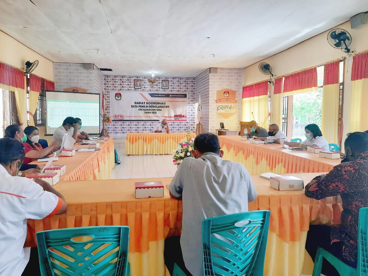 Maumere, kab-sikka.kpu.go.id- Komisi Pemilihan Umum (KPU) Kabupaten Sikka kembali menggelar Rapat Koordinasi (Rakor) terkait Daftar Pemilih Berkelanjutan (DPB) periode Bulan Maret Tahun 2021, kegiatan tersebut berlangsung di Aula KPU Sikka pada Kamis (25/3). Turut hadir stake holders terkait yaitu Dinas Kependudukan dan Pencatatan Sipil (DISPENDUK CAPIL) Kabupaten Sikka, Badan Pengawas Pemilu (BAWASLU) Kabupaten Sikka serta Partai Politik tingkat Kabupaten Sikka. Rakor DPB dibuka oleh Ketua KPU Sikka Yohanes Krisostomus Feri, dengan terlebih dahulu ia memaparkan proses yang dilakukan KPU Sikka dalam menghasilkan DPB periode Maret 2021 dan Rekapitulasi DPB Triwulan I 2021. Dalam paparannya pimpinan KPU Sikka itu juga menyampaikan bahwa penelusuran faktual yang dilakukan oleh KPU Sikka dengan memperhatikan rekomendasi dari Bawaslu Sikka pada Rakor sebelumnya. “7 (tujuh) dari 11 (sebelas) data telah berhasil kita verifikasi, sisanya 4 (empat) masih akan ditelusuri lebih lanjut karena mengingat terkendala terputusnya akses jalan ketika melakukan penelusuran faktual untuk menuju ke beberapa Desa/Kecamatan sehingga data belum terkonsolidasi secara menyeluruh”, jelasnya. Ketua Bawaslu Sikka, Harun Al Rasyid, S.Pd, M.Pd, pada kesempatannya menyampaikan harapannya agar data yang belum terkonsolidasi tersebut dapat segera ditindak lanjuti agar pada saat Rakor selanjutnya dapat diupdate dan menghasilkan data terbaru yang valid,” paparnya. Pada kesempatan yang lain perwakilan Partai Keadilan dan Persatuan Indonesia (PKPI), Vicky Da Gomes, menyampaikan dukungannya terkait proses rekonsolidasi DPB. Ia menuturkan “Harapan dari PKPI agar ke depan daftar pemilih yang statusnya belum jelas menjadi jelas, karena ini juga dapat berpengaruh untuk perolehan suara PKPI”. Dukungan serupa juga disampaikan oleh perwakilan Partai Persatuan Indonesia (Perindo), Lusianus Vitelius yang menyampaikan apresiasi terkait DPB untuk Periode Maret ini. “Perindo juga dalam menyiapkan bahan untuk verifikasi Parpol, sehingga Perindo berharap agar empat data tersebut diperbarui”, tambahnya. Pieter Liman Hege selaku Kabid Piak Dispenduk Capil Kabupaten Sikka, dalam forum koordinasi ini menyampaikan bahwa telah melakukan konsolidasi terkait beberapa nama, ada yang telah pindah domisili dan lain sebagainya, “kedepan dari Dispenduk Capil akan bersurat ke Desa/Kecamatan agar terkait kesalahan penulisan RT/RW bisa diperbaiki, mengingat untuk pembaharuan data kependudukan dibutuhkan pengaduan langsung dari yang bersangkutan untuk melapor ke Dukcapil”, jelas Pieter. Sebagai informasi bahwa dalam rapat koordinasi ini menghasilkan rekapitulasi DPB dimana terdapat update daftar pemilih sebanyak 202.616 dengan rincian Pemilih Laki-Laki 93.362 dan Pemilih Perempuan 109.254 pemilih, yang tersebar di 21 Kecamatan se Kabupaten Sikka. Hasil tersebut termuat dalam Berita Acara Nomor 15/BA/III/2021 yang dapat diakses oleh masyarakat melalui Website E-PPID KPU https://sikkakabppid.kpu.go.id. (hupmas/*)